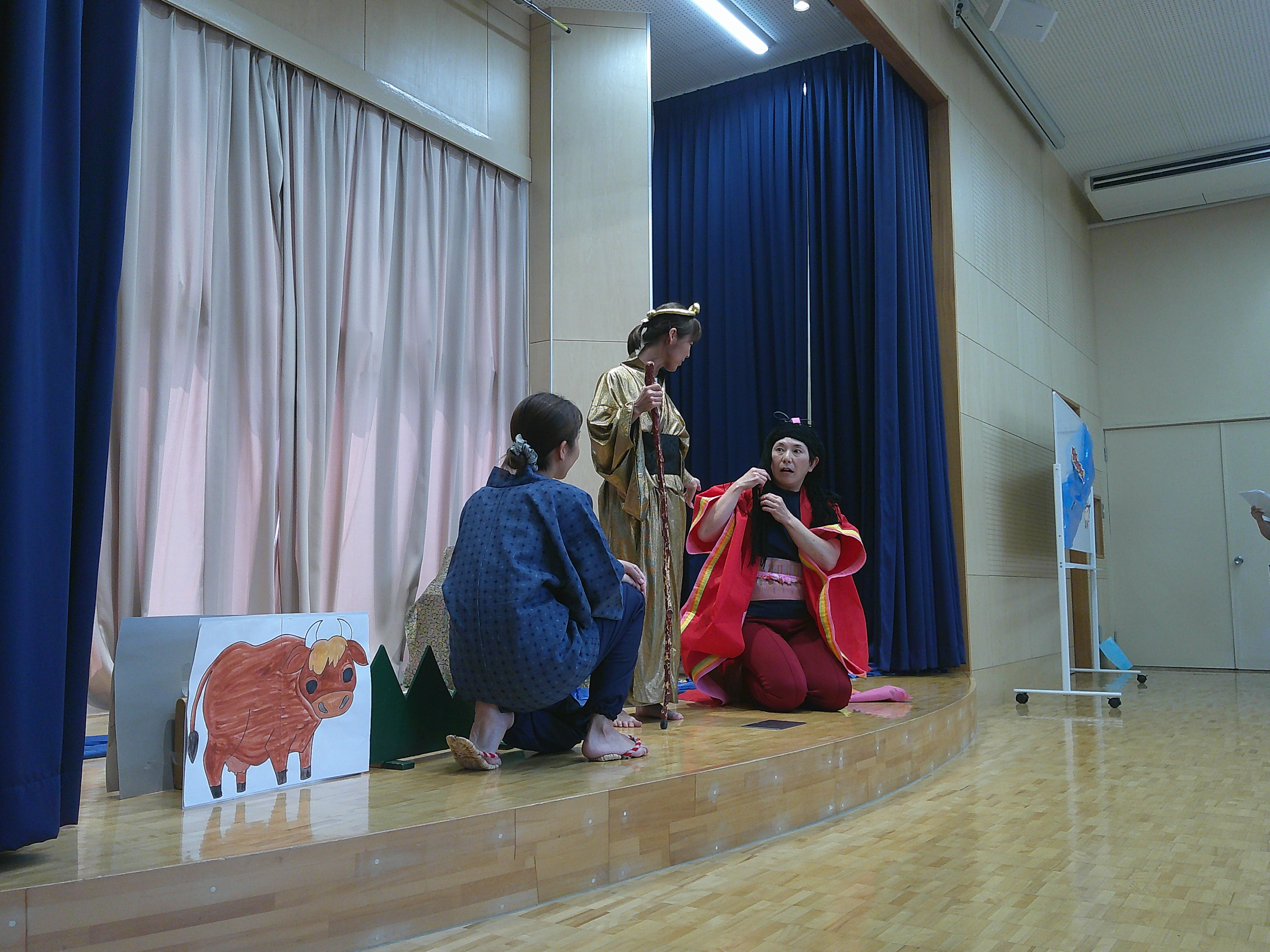 たなばたさまの歌を歌ったり、七夕の由来を聞いて先生方の劇を見ました。