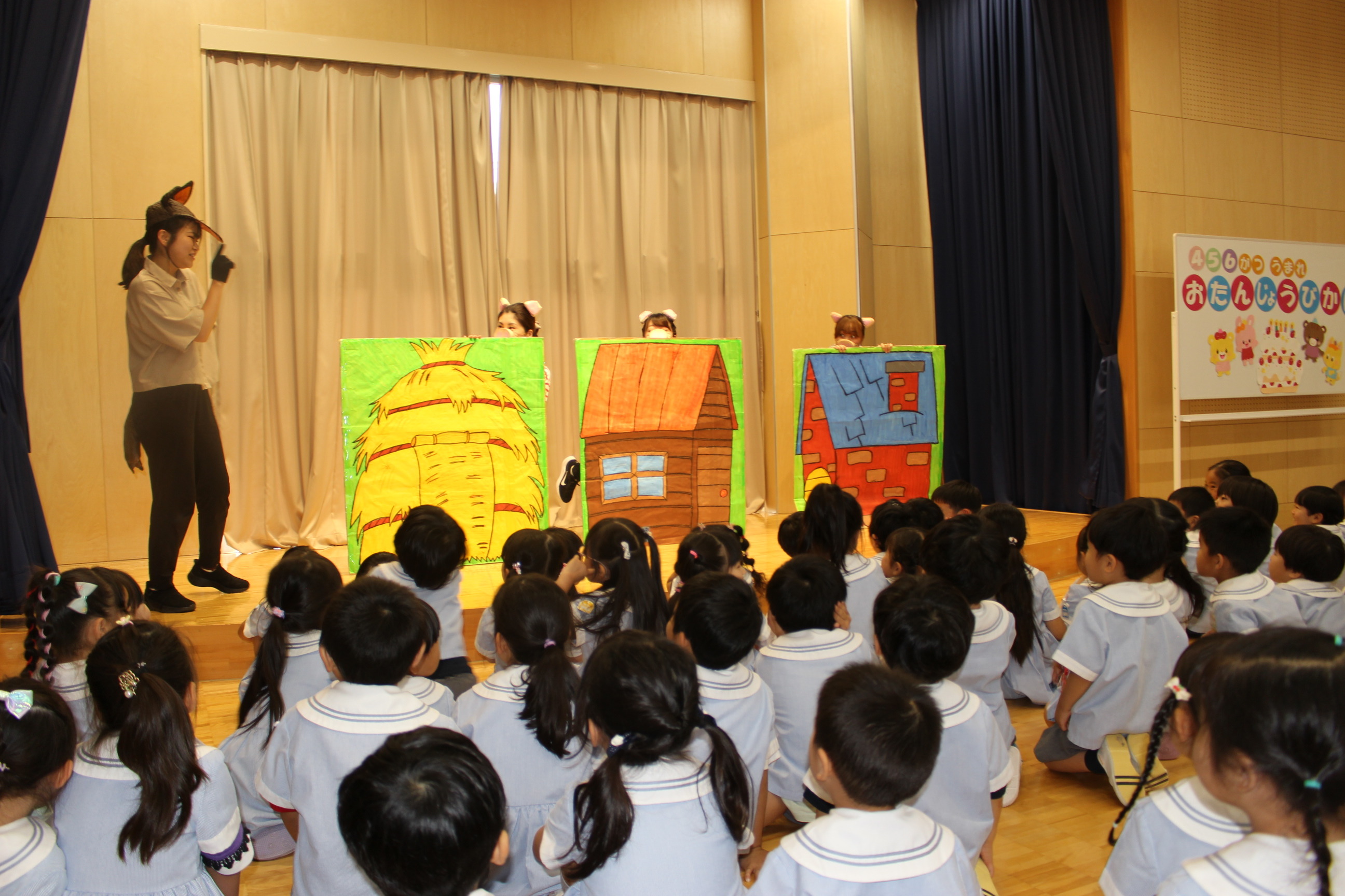 各学年素敵な歌のプレゼントがあり、先生達からは「三匹のこぶた」の劇のプレゼントがあり大盛り上がりでした!